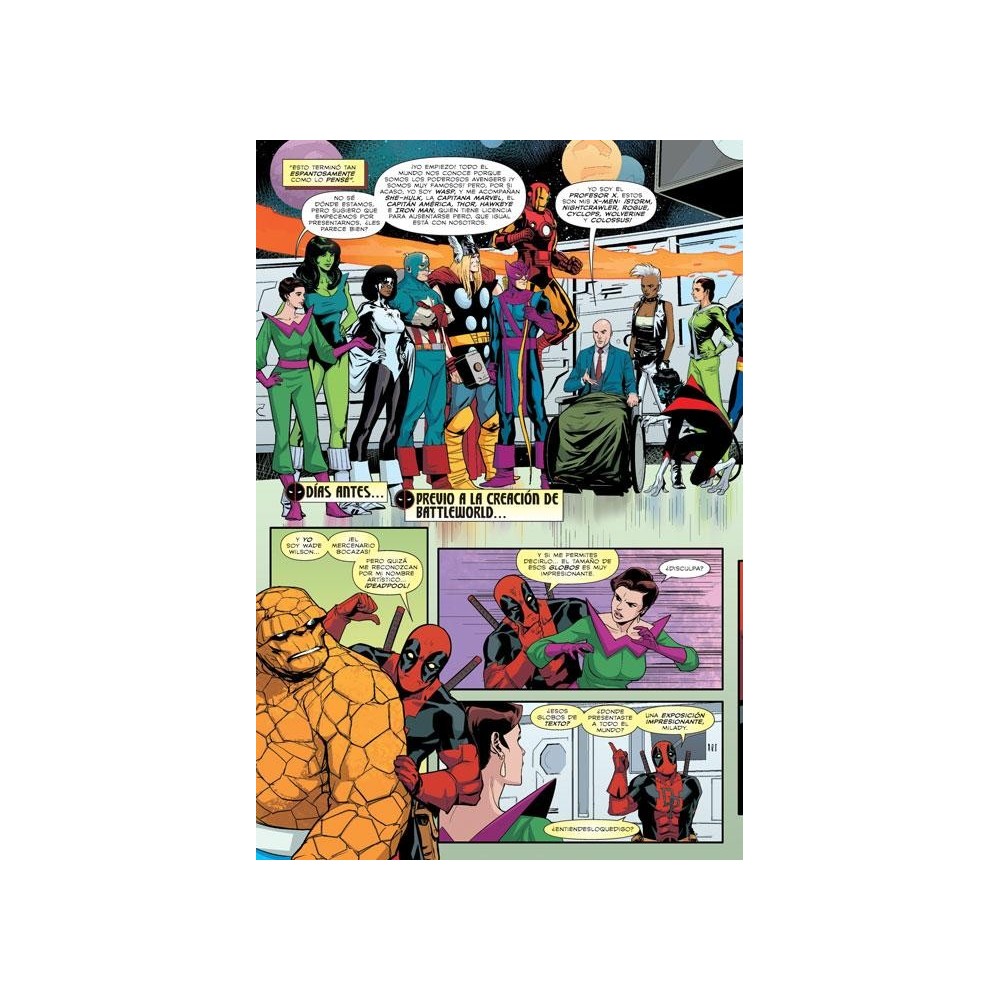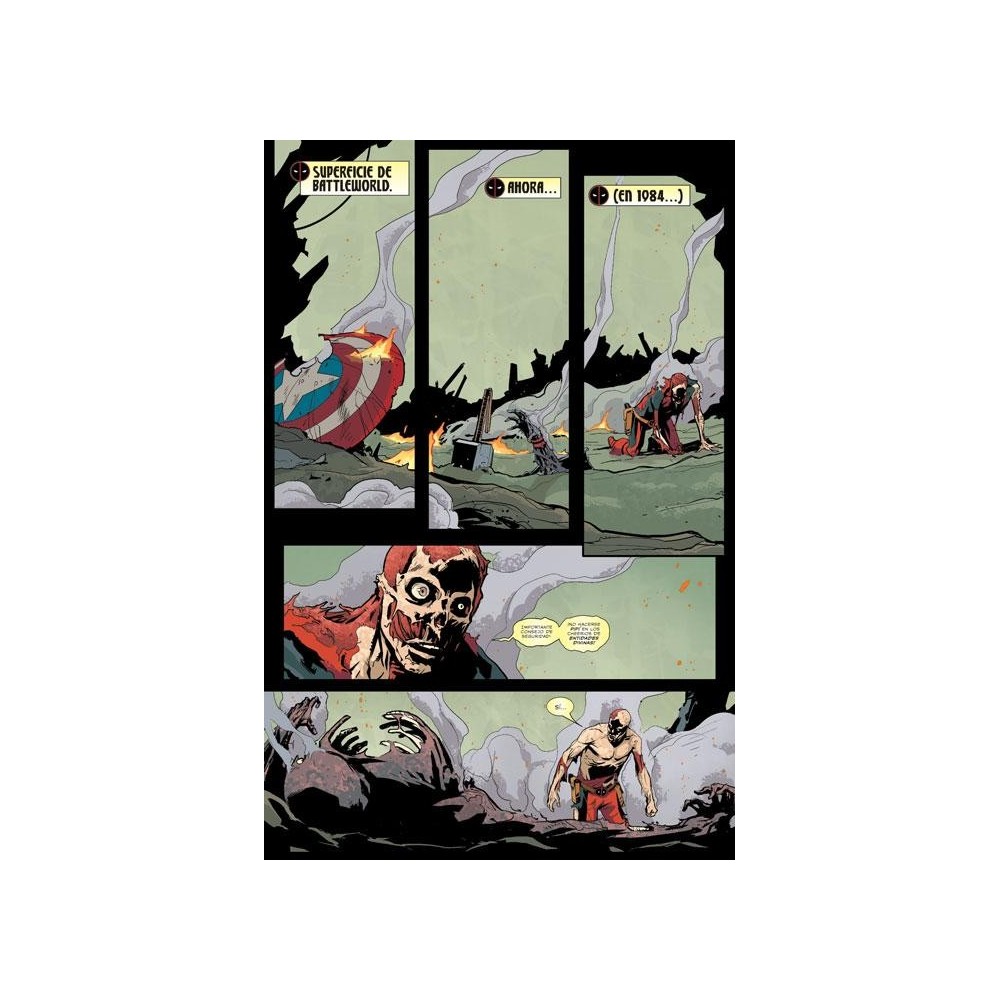 Nop, ¡hablamos de la épica original de 1984! Un momento... Deadpool no estuvo en esa saga, ¿o sí? ¡Se equivocan! Prepárense para descubrir la horripilante realidad a medida que el equipo de Deadpool Killustrated revela el rol crucial que el Mercenario Bocón jugó en el Battleworld de Beyonder! Uno que fue tan secreto, que los demás superhéroes de Marvel no recuerdan. Revivan Secret Wars, desde el ascenso de Doctor Doom al poder, hasta el momento en el que Hulk levantó una montaña, —¡y todo con Deadpool incluído!— Además, en medio del caos un disfraz viene y va... ¡Es la nueva e increíble armadura de Wade, ¡que es permanente! ¡Atrévete a descubrir cómo terminaron las Secret Wars! ¡Y la manera en que nuestro asesino consentido salvó al universo!