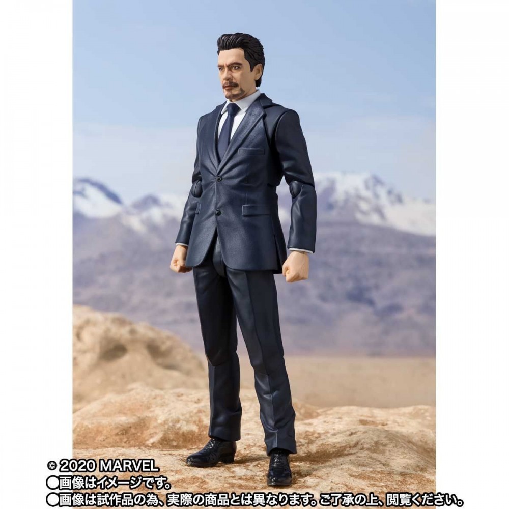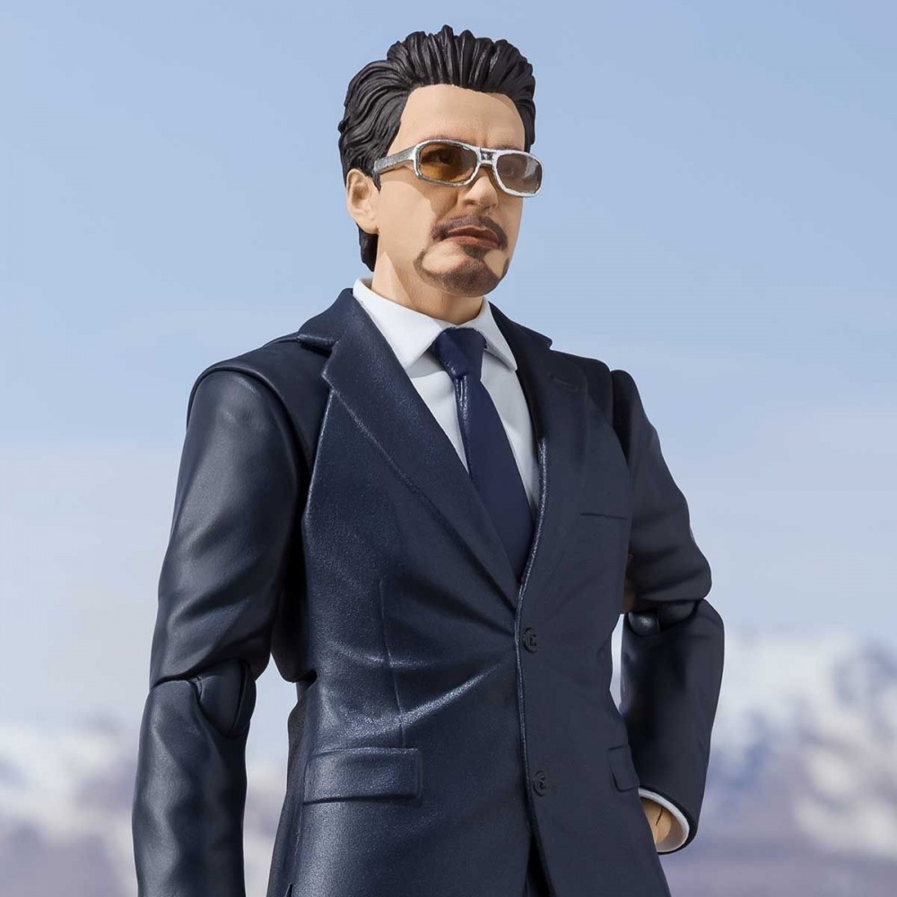 De la primera película de Iron Man, el genio multimillonario Tony Stark se une a S.H.Figuarts. Recrea escenas de Tony Stark desde presentar el misil Jericho a la construcción del Mark 1 mientras permanece capturado en una cueva del Medio Oriente. Este conjunto incluye figura, dos cabezas opcionales (gafas de sol / cabello despeinado), una parte superior del cuerpo opcional (camiseta sin mangas), cuatro manos izquierdas opcionales, cinco manos derechas opcionales, accesorio para teléfono móvil, tenazas, yunque, martillo, y máscara de Iron Man Mk 1.