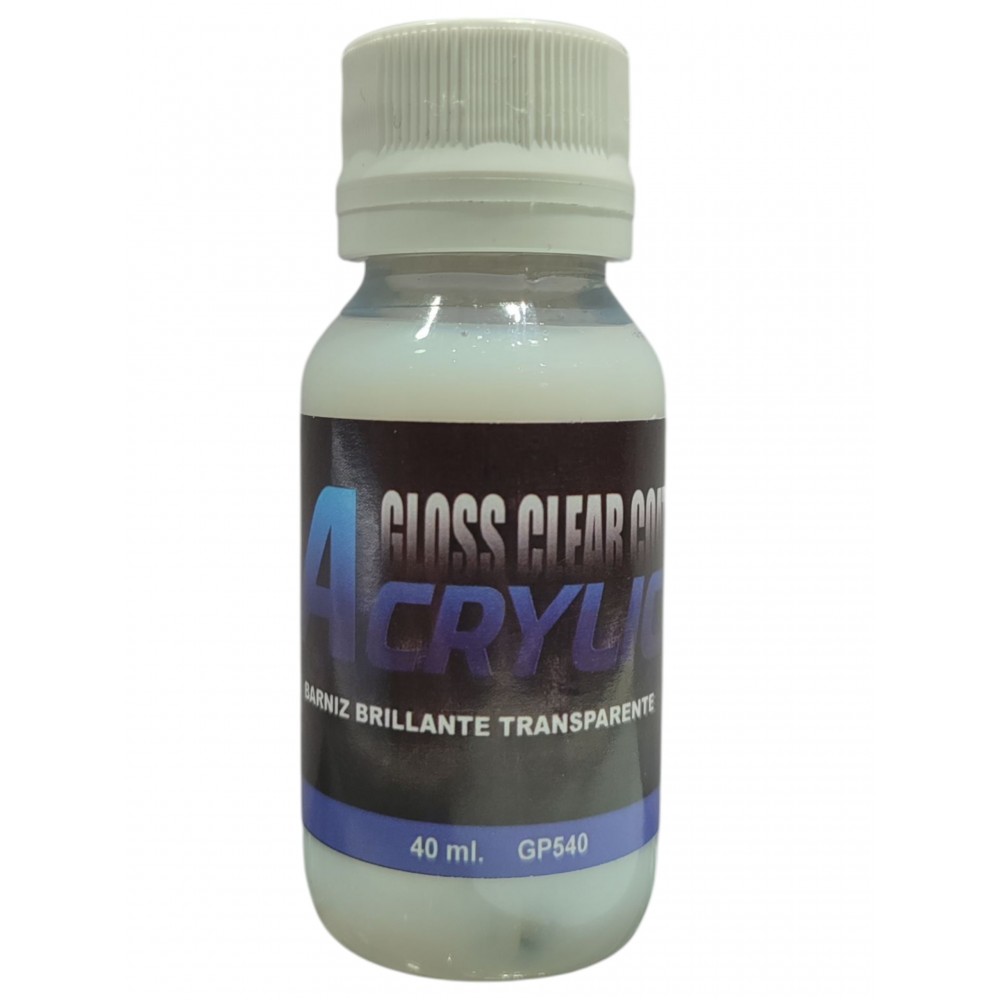 Barniz acrilico para terminado de modelos, protege y proporciona un terminado homogeneo sobre pintura y calcomanias.