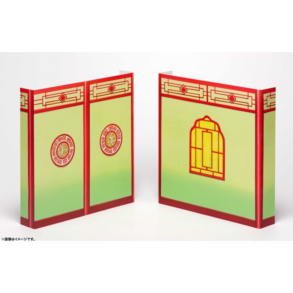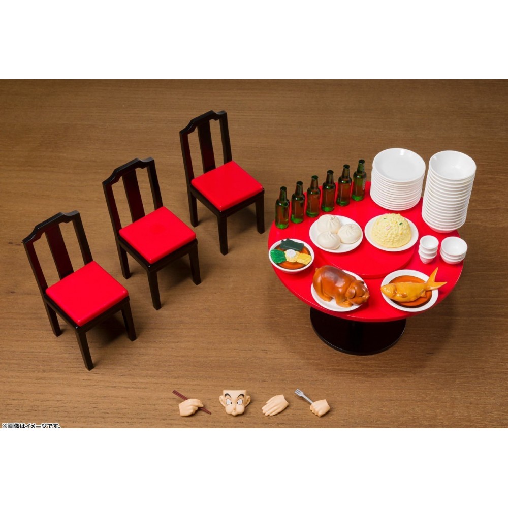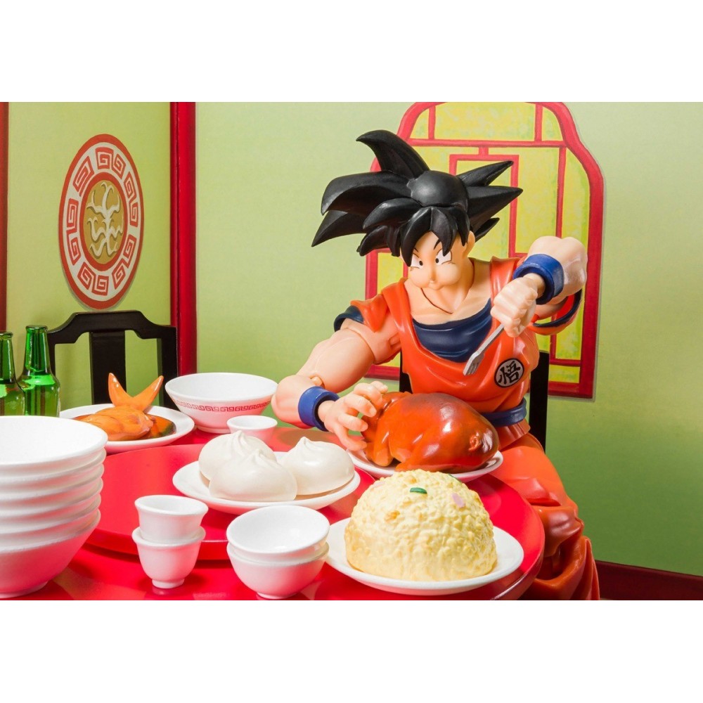 Incluye una mesa, 3 sillas,  un rostro comiendo de Son Goku, una mano con palillos, 1 mano con tenedor, y una mano derecha.  Además incluye un par de fondos de cartón.