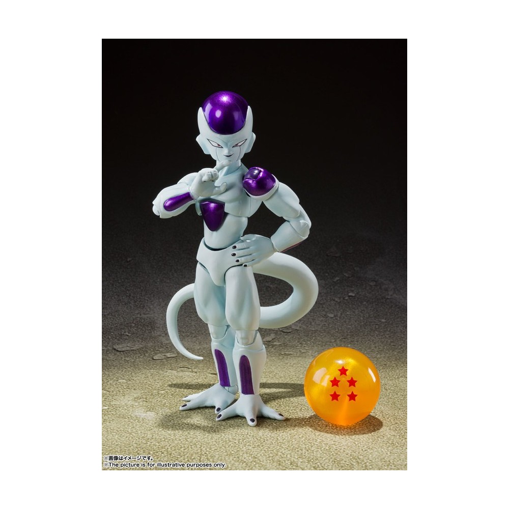 ¡Frieza en su cuarta forma, tal como se ve en "Dragon Ball Z", se une a S.H.Figuarts! Numerosas piezas y efectos opcionales te permiten recrear escenas de acción dinámicas. El set incluye dos cabezas opcionales, dos manos opcionales izquierdas y cuatro manos derechas, pieza de brazos cruzados opcional, pies opcionales, aureola, cola, Esfera del Dragón Namekiana (5 estrellas)